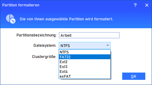 Schritt 2. Wählen Sie das gewünschte Dateisystem und klicken Sie auf die Schaltfläche „OK“.
