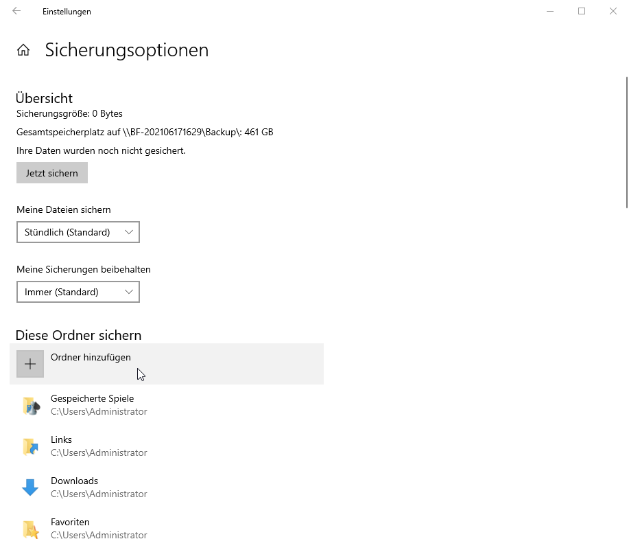 Wie kann man weitere Ordner zum Dateiversionsverlauf hinzufügen oder ausschließen?