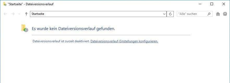 Schritt 3: Öffnen Sie „Dateien mit Dateiversionsverlauf wiederherstellen“ und es wird angezeigt - „Es wurde kein Dateiversionsverlauf gefunden“. Klicken Sie auf „Dateiversionsverlauf - Einstellungen konfigurieren“.