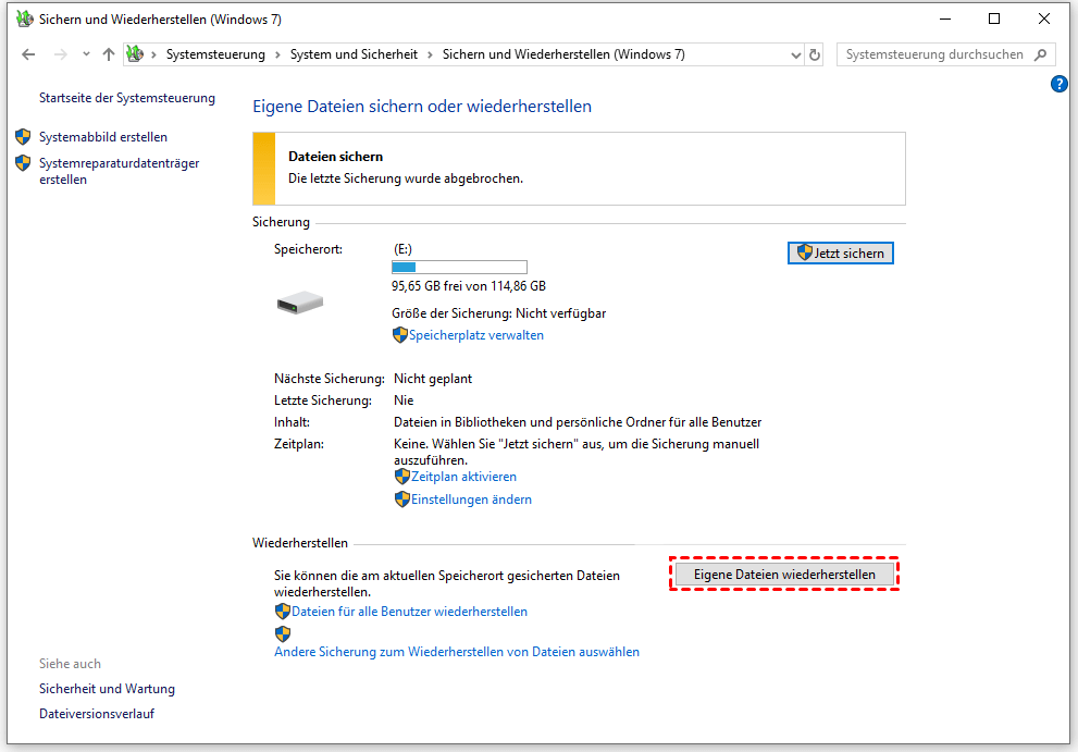 Weg 2. HDD Daten über Sichern und Wiederherstellen retten