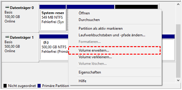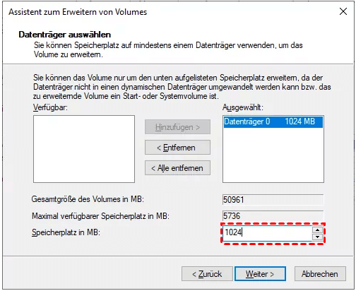 Lösung 4. Volume erweitern, um den nicht zugeordneten Speicherplatz hinzuzufügen