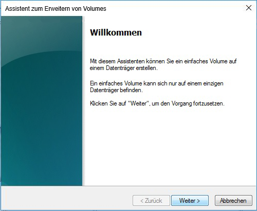 Schritt 3: Klicken Sie auf „Weiter“ im Begrüßungsfenster des Assistenten für neue einfache Volumes.