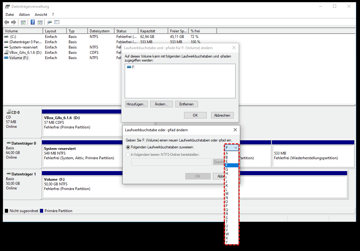 Ihre SD-Karte ist möglicherweise nur aufgrund eines fehlenden Laufwerksbuchstabens zu RAW geworden. Sie können einen neuen Laufwerksbuchstaben zuweisen. Verbinden Sie Ihre RAW-SD-Karte im Voraus.