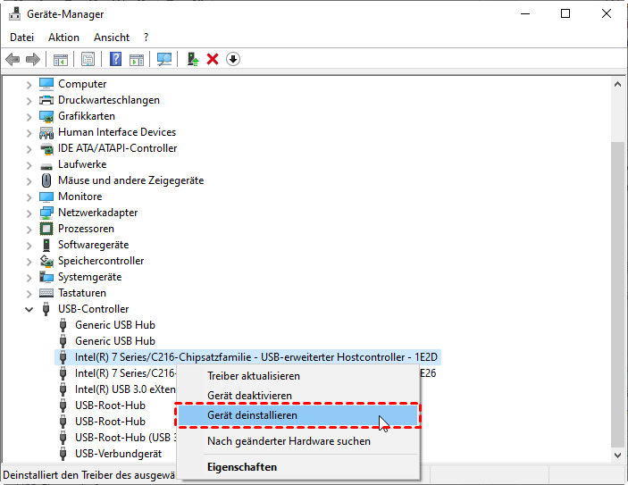 Windows installiert automatisch Treiber für das neu angeschlossene Laufwerk, kann jedoch manchmal dabei fehlschlagen. Sie müssen die Treiber im Geräte-Manager manuell installieren.