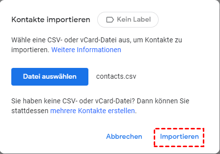 Schritt 3. Um die Kontaktdaten in Gmail zu importieren, klicken Sie auf Importieren.