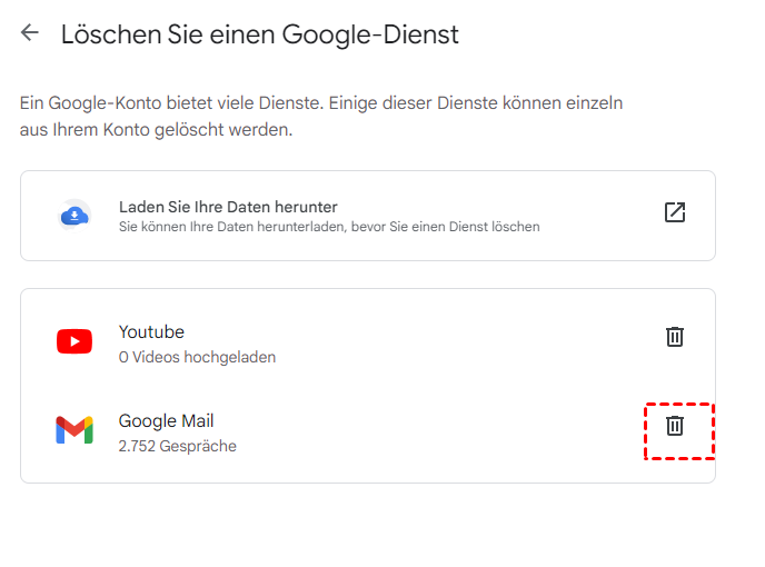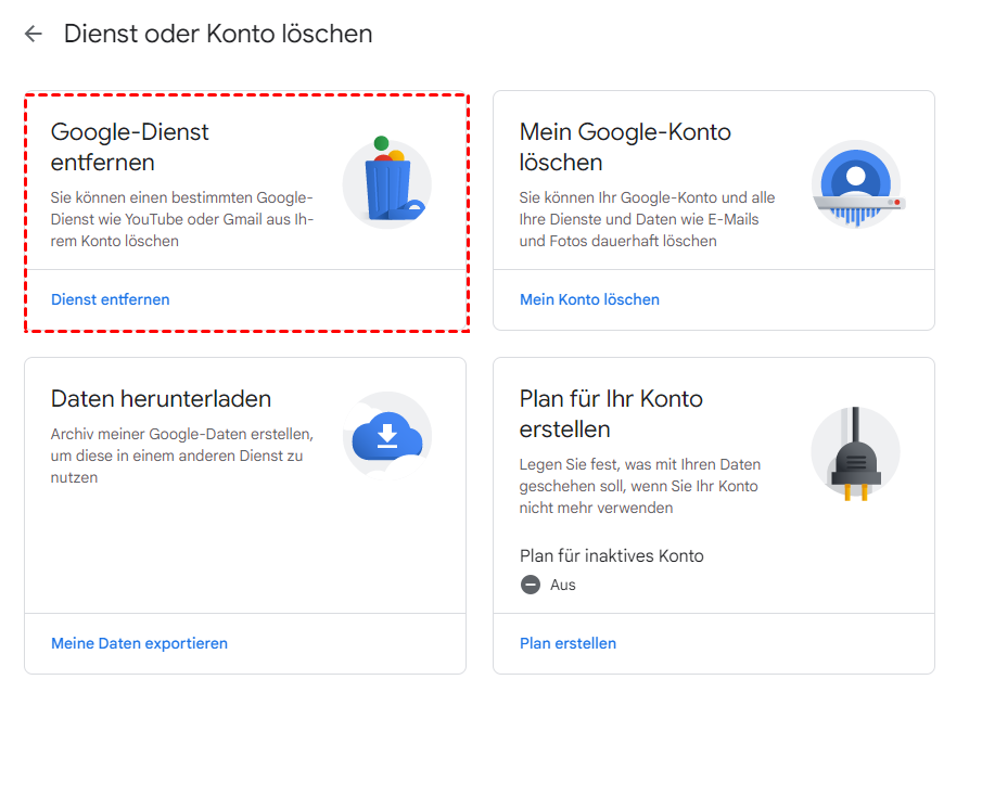 Schritt 3. Gehen Sie zum Tab Daten & Personalisierung und klicken Sie hier auf die Option Dienst oder Konto löschen.