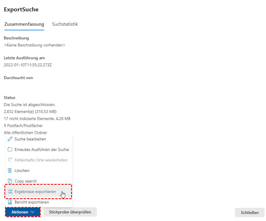 Die eDiscovery-Tools in Microsoft Purview ermöglichen Ihnen, nach Inhalten in Exchange Online, OneDrive for Business, SharePoint Online, Microsoft Teams, Microsoft 365 Groups und Yammer Teams zu suchen. Sie können Postfächer und Sites in derselben eDiscovery-Suche durchsuchen und dann die Suchergebnisse exportieren. Befolgen Sie diese Schritte, um das Office 365 Archiv-Postfach in PST zu exportieren: