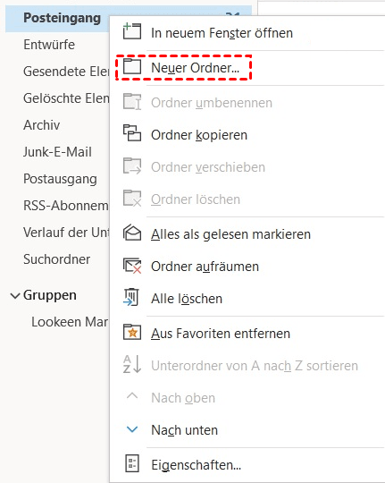 Wenn Sie alte Outlook Mails sichern möchten, müssen Sie zuerst einen neuen Ordner in Outlook erstellen und die gewünschten alten E-Mails in diesen Ordner integrieren. Gehen Sie dann durch die beiden unten angegebenen Methoden, um zu erfahren, wie Sie in Outlook alte Mails sichern können.