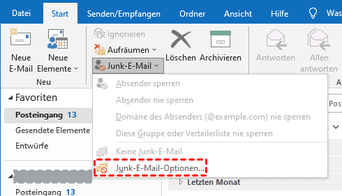 Microsoft Outlook verfügt über eine Spamfilteroption, die Junk- und verdächtige E-Mails in einen Spam-Ordner sendet. Dieser Ordner ist separat von Ihrem Posteingang. Wenn also Outlook Mails nicht ankommen, kann es passieren, dass Outlook sie versehentlich hierhin verschiebt.
