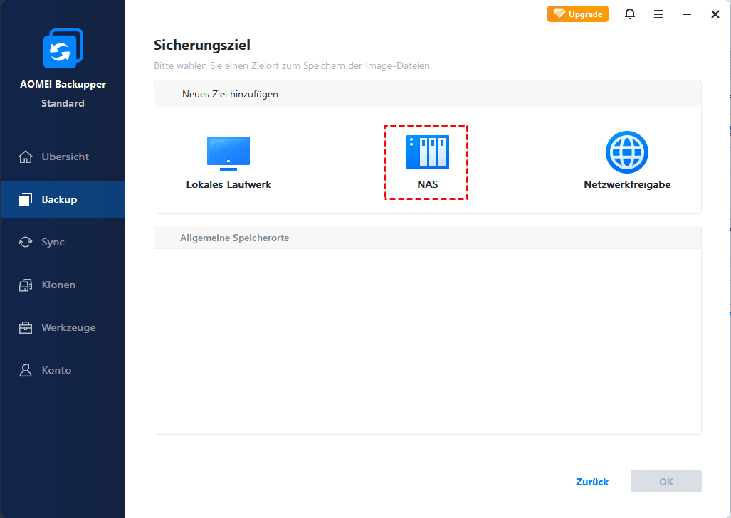 NAS-Geräte (Network Attached Storage) bieten ihren Benutzern großen Komfort. Alle Personen innerhalb eines Unternehmens können ihre Daten gleichzeitig nutzen, indem sie auf entfernte NAS-Geräte zugreifen. Was die Datensicherung betrifft, so können Sie die Backup-Image-Datei auch auf einem NAS-Gerät ablegen, anstatt den Computer manuell an eine externe Festplatte anzuschließen.
