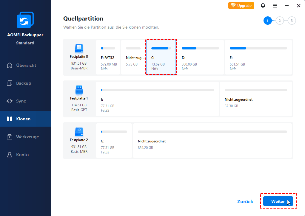 Schritt 2. Wählen Sie eine Quellpartition, z.B. C-Partition. Klicken Sie auf Weiter, um fortzufahren.