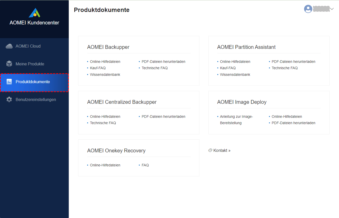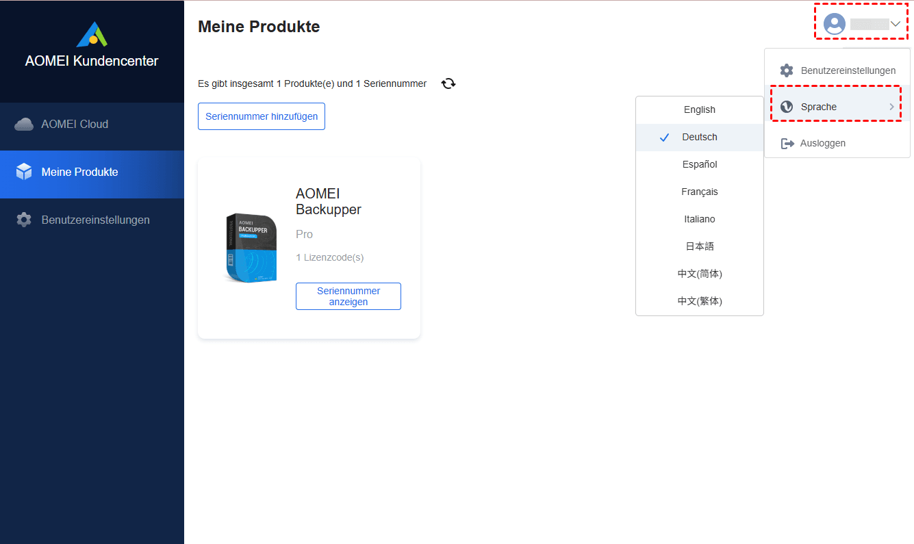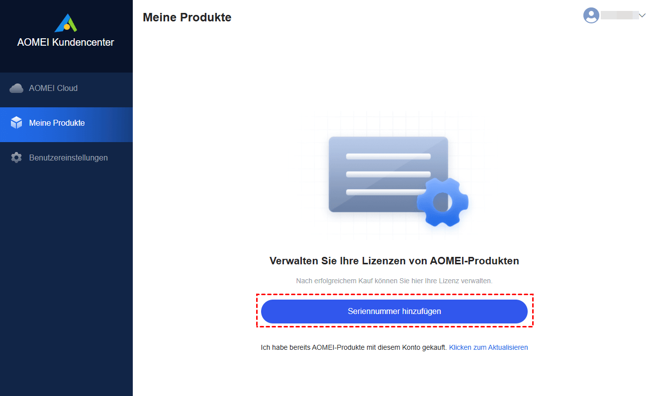 Sie können gekaufte Lizenzen von AOMEI-Produkten auch im AOMEI Kundencenter verwalten.