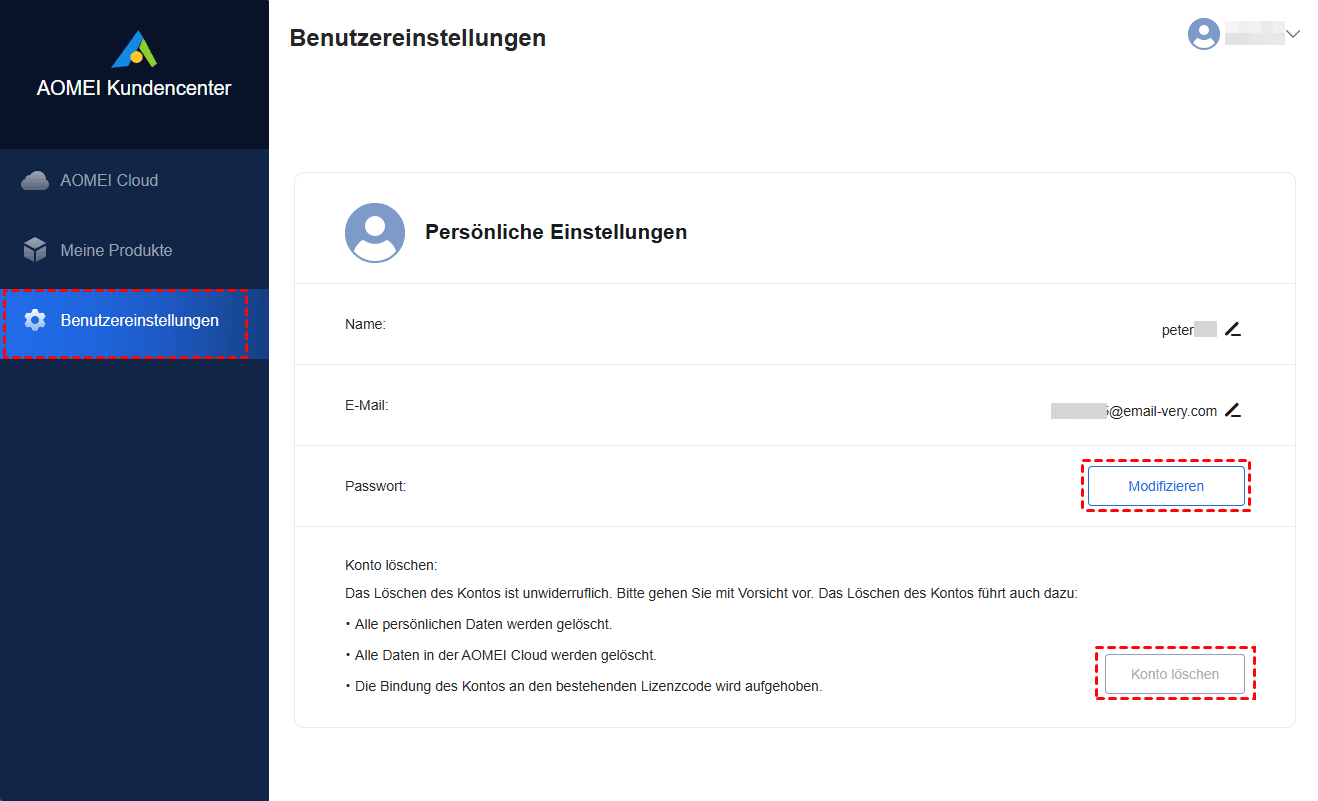 Wie verwalten Sie Ihr AOMEI-Konto?