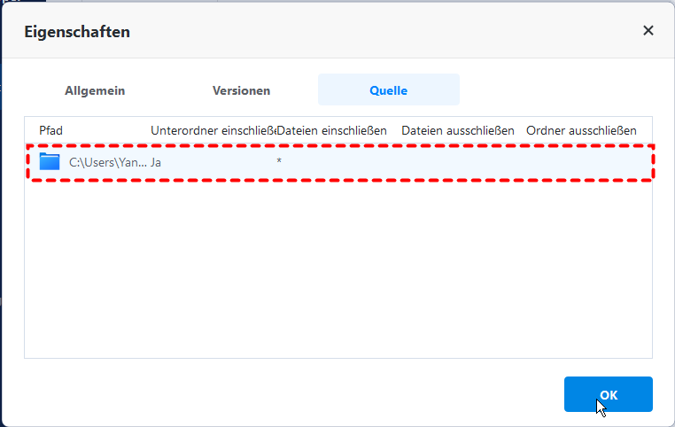 Versionen: Es werden die Sicherungsversionen und das entsprechende Datum unter derselben Sicherungsaufgabe angezeigt. Quelle: Es zeigt die Sicherungsquelle und die Filtereinstellungen der Aufgabe an.HINWEISE: Wenn Sie bei der Erstellung eines Zeitplanauftrags die Option „Nur den Zeitplan hinzufügen“ wählen, werden in der Backup-Verwaltungsoberfläche nicht so viele Schaltflächen angezeigt (wie in den obigen Screenshots), da noch kein Backup-Image erstellt wurde.