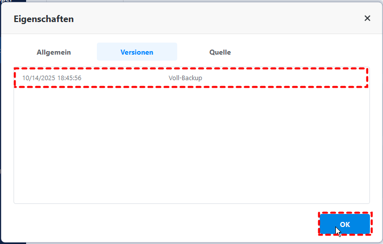 10. Eigenschaften: Detaillierte Informationen zu dieser Sicherung anzeigen.