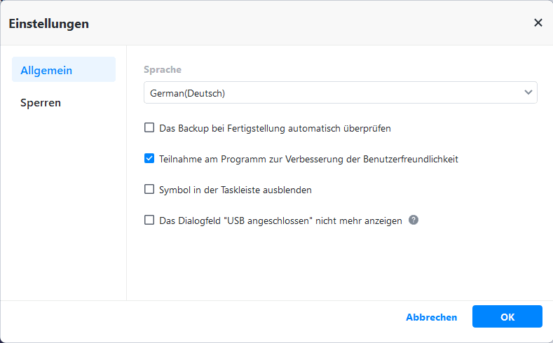 Tipp: Sie können AOMEI Backupper auch automatisch das Backup-Image sofort nach Abschluss des Backups überprüfen lassen (empfohlen), indem Sie die Option „Das Backup bei Fertigstellung automatisch überprüfen“ unter dem Hauptmenü->Allgemein auswählen.