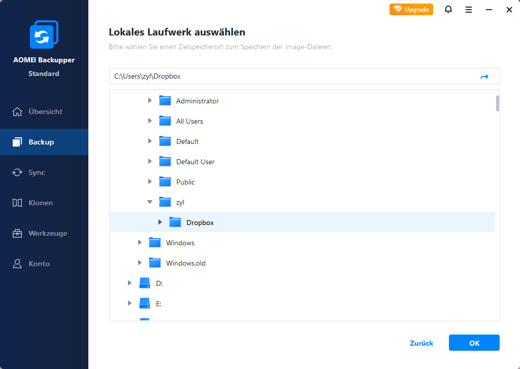 - Backup in die AOMEI Cloud