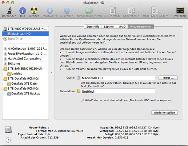 2. Kostenlose Alternative zu Acronis Festplatte Klonen Software für Mac - Festplattendienstprogramm
