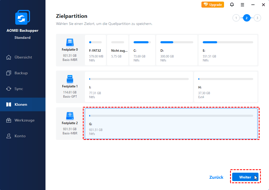 Um die EFI-Systempartition zu kopieren, benötigen Sie auch eine Festplatte Klonen Software, die in der Lage ist, versteckte Partitionen zu klonen. Sie brauchen dafür nicht zu bezahlen. Ein kostenloses Tool, AOMEI Backupper Standard, ist gut genug für das Klonen von Partitionen und Festplatten.