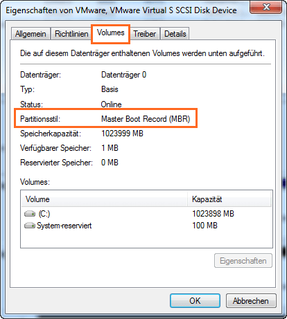 Die Quell- und die Zielfestplatte müssen vom gleichen Typ sein. Wenn Ihre Quellfestplatte beispielsweise ein MBR ist, muss auch die Zielfestplatte ein MBR sein. Sie können den Festplatten-Typ überprüfen, indem Sie die folgenden Schritte ausführen.