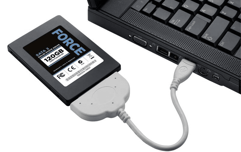 Wenn es sich um einen Laptop ohne zweiten Laufwerksschacht handelt, benötigen Sie einen SATA-zu-USB-Adapter, um die externe Festplatte anzuschließen.