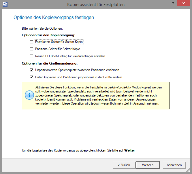 5. Dann können Sie die Kopieroptionen festlegen. Und klicken Sie dann auf Weiter.