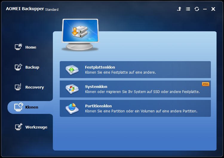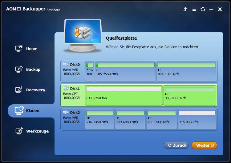 Außerdem unterstützt diese Klon-Software noch „Systemklon“, um nur das Betriebssystem zu klonen und „Partitionsklon“, um bestimmte Partitionen und Daten zu klonen. Wenn Sie diese Anforderungen haben, laden Sie diese beliebte Klon-Software herunter und starten Sie den Klonprozess.