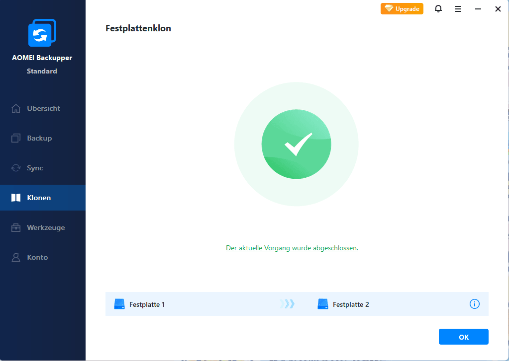 | AOMEI Backupper | Klonen von Festplatten / Partitionen; SSD-Ausrichtung; intelligente Sektorenkopie; VSS-Hintergrundklonen | Alle Marken (Samsung, WD, usw.) | Benutzer, die flexible Klonoptionen benötigen | Kostenlose Version kann keine Systemfestplatten klonen |