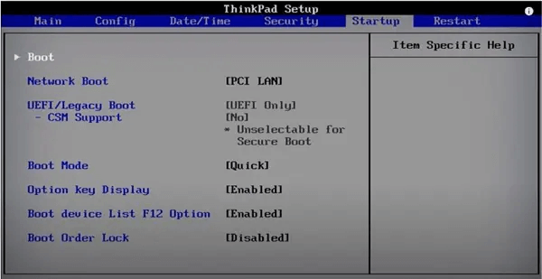 Schritt 2. Gehen Sie mit der rechten Pfeiltaste zu Startup und drücken Sie dann die Eingabetaste auf Boot.