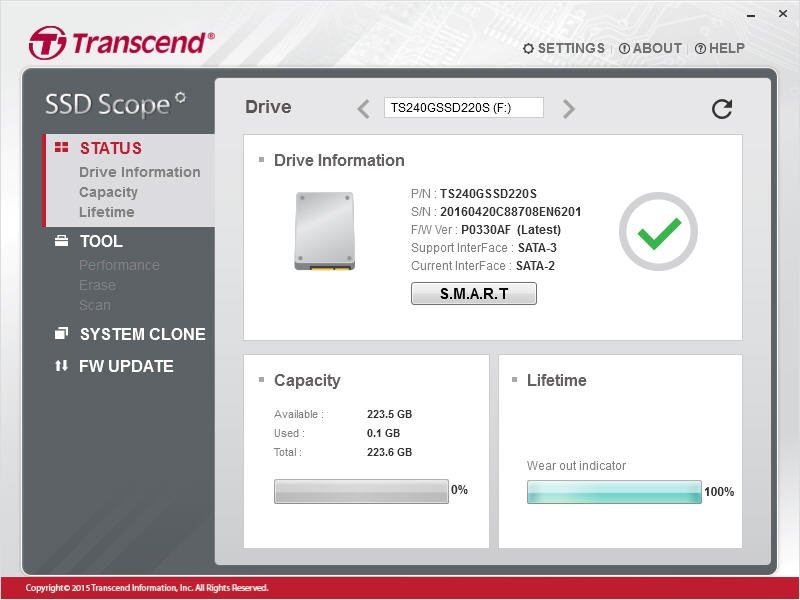 Wie Samsung seine eigene Samsung Data Migration Software für SSD-Produkte hat, hat Transcend auch seine SSD Scope Clone Software. Die Benutzer, die ein Transcend SSD-Produkt gekauft haben, werden Transcend SSD Scope bekommen, ein Datenmigrationstool sowie ein SSD-Wartungsprogramm.