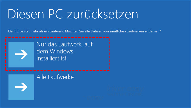 2. Entscheiden Sie, ob das Laufwerk, auf dem Windows installiert ist, oder alle Laufwerke gelöscht werden sollen, und klicken Sie auf Weiter.