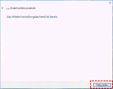 5. Wenn das Wiederherstellungslaufwerk bereit ist, klicken Sie auf Fertig. Dann trennen Sie den USB-Stick sicher.