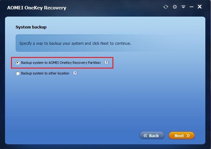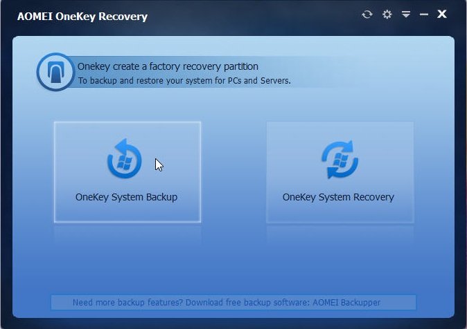 Schritt 1. Herunterladen, installieren Sie AOMEI OneKey Recovery, und dann werden Sie Symbol finden. Öffnen Sie bitte AOMEI OneKey Recovery, und werden Sie die Schnittstelle wie das unten Bild sehen: