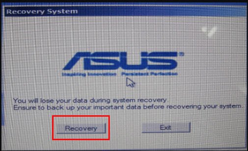 Schritt 3. Wählen Sie hier "Recovery", um Eee PC auf Auslieferungszustand zurückzusetzen.