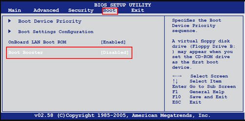 Bevor Sie Eee PC auf Werkseinstellungen zurücksetzen, müssen Sie den Boot-Booster deaktivieren. Andernfalls wird der BIOS-Bildschirm des Computers beim Start vom Boot Booster entfernt. Standardmäßig ist diese Option aktiviert, deshalb müssen wir zuerst die Option deaktivieren.