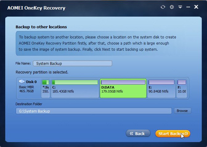 • Wenn Sie nicht nur Ihr System, sondern auch Ihre gesamte Festplatte, die angegebene Partition oder einzelne Dateien und Ordner sichern möchten, können Sie die komplette Backup-Software verwenden - AOMEI Backupper, die auch die Sicherung auf externe Festplatte, USB-Flash-Laufwerk, CD / DVD, geteiltes Netzwerk oder NAS unterstützt. Es ist der beste und sicherste Weg, um Ihr System und Daten aus der Katastrophe zu schützen.