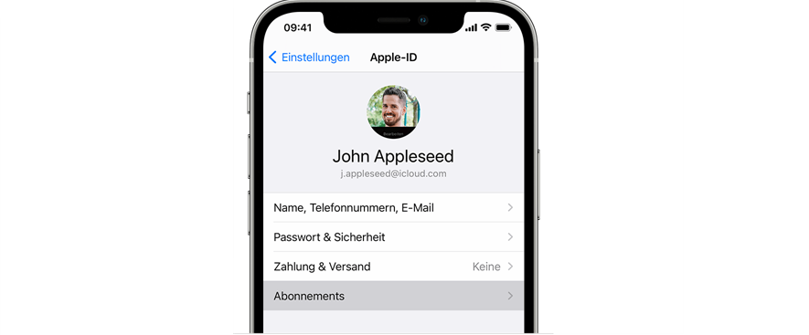 Um die Abonnements zu überprüfen, gehen Sie auf Ihrem iPhone zu Einstellungen > [Ihr Name] > Tippen Sie auf „Abonnements“, um zu sehen, ob das Abonnement abgelaufen ist. Wenn Sie die Option nicht sehen können, gehen Sie zu iTunes & App Store > Ihre Apple ID > Apple ID anzeigen, melden Sie sich an und scrollen Sie nach unten, um auf Abonnements zu tippen.