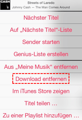 Schritt 3. Berühren und halten Sie die Musik, die Sie zu Ihrer Bibliothek hinzugefügt haben, und tippen dann auf Download, um den Inhalt auf Ihre Geräte herunterzuladen und offline verfügbar zu machen.