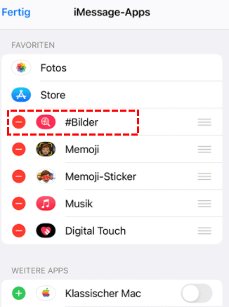 2. Tippen Sie auf das rote Minus-Symbol neben #Bilder > Tippen Sie auf Aus Favoriten löschen.