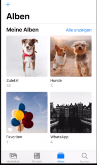 Die gespeicherten Fotos stehen unter: die App Fotos > Alben > Zuletzt.
