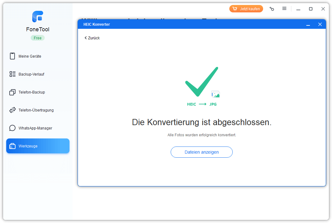 Sie können auf dem iPhone, Windows-PC, Mac Bilder von HEIC in JPG gratis umwandeln. FoneTool kann ohne Datenlecks Ihre Fotos von HEIC in JPG und PNG konvertieren, und bietet Daten-Backup, mit dem Sie Ihre wichtigen iPhone-Daten schützen.