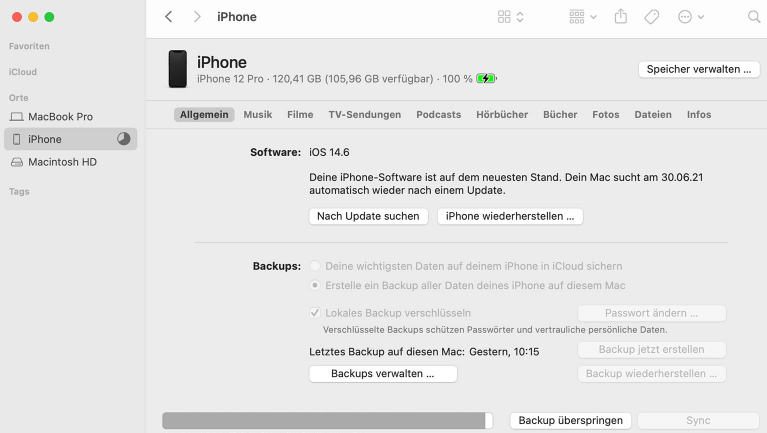 Weg 5. iPhone Daten übertragen ohne iCloud über Finder