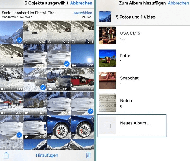 Tipp: Optional können Sie auch ein neues Album erstellen, indem Sie zur: Fotos-App > Alben > Das +-Symbol > Neues Album klicken.
