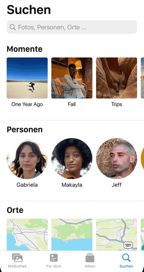 Sie können auch die Gesichtserkennungsfunktion in der Fotos-App nutzen, um Fotos zu organisieren. Gehen Sie einfach zu Gesichter und suchen die Zeile mit den vorgeschlagenen Gesichtern, um die Fotos auszuwählen und zu den entsprechenden Alben hinzuzufügen.
