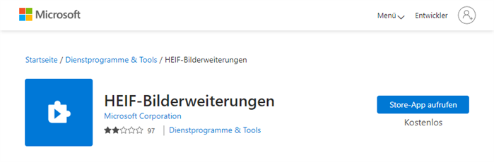 Doppelklicken Sie auf ein HEIC-Bild, um die Fotos-App zu starten. > Klicken Sie auf den Link „Codecs im Microsoft Store herunterladen“. > Sie gelangen dann zur Seite mit den HEIF-Bilderweiterungen. > Klicken Sie auf die Schaltfläche „Store-App aufrufen“, um sie herunterzuladen und auf Ihrem Computer zu installieren.
