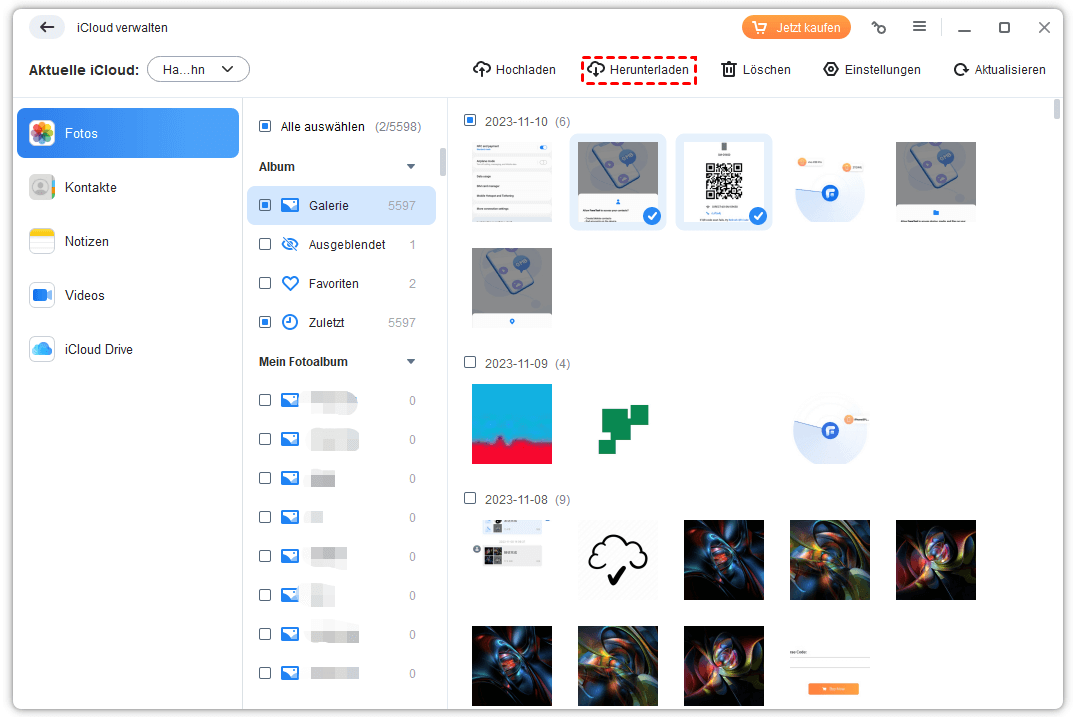 Schritt 4. Drücken Sie die Strg-Taste auf Ihrem PC oder die Befehlstaste auf Ihrem Mac und wählen Sie mehrere oder alle Fotos in iCloud aus.