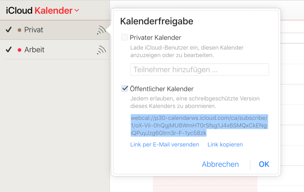 Synchronisieren Sie einen Apple/iCloud-Kalender manuell mit einem Google-Kalender, indem Sie den Apple-Kalender freigeben und ihn in den Google-Kalender importieren.