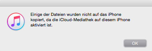 Musik synchronisieren - aber die Meldung „iCloud Musikmediathek ist aktiviert“ erscheint