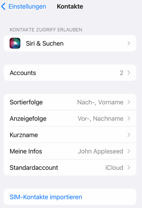 iCloud synchronisiert Kontakte nicht mehr? Vielleicht haben Sie iCloud nicht als Standardkonto eingerichtet. Gehen Sie zu: Einstellungen > Kontakte > Standardaccount. Wählen Sie dann iCloud. Danach synchronisieren Sie Ihre Kontakte erneuert mit iCloud.