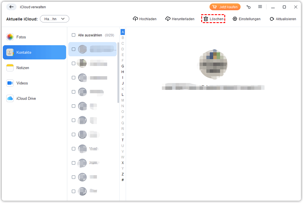 Schritt 2. Gehen Sie zum Abschnitt „Kontakte“ > Wählen Sie die Kontakte aus, die Sie entfernen möchten > Klicken Sie auf die Schaltfläche „Löschen“, um den Löschvorgang zu bestätigen.